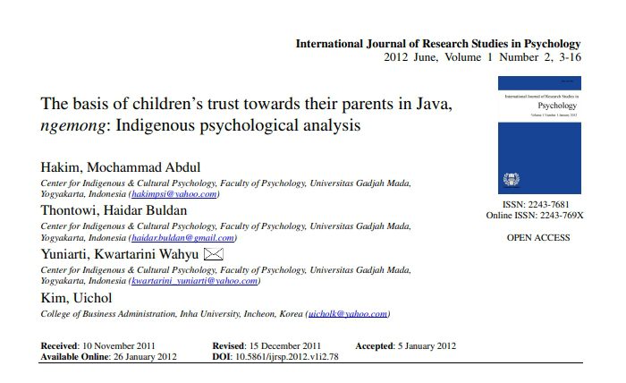 • The basis of children’s trust towards their parents in Java, ngemong: Indigenous psychological analysis