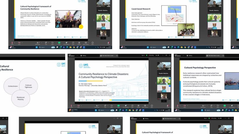 Dari perspektif psikologi budaya, Dr. Hakim menjelaskan bahwa resiliensi komunitas bukan hanya soal kesiapan infrastruktur, tetapi juga proses budaya yang terwujud melalui interaksi antara nilai, keyakinan, dan pola relasi sosial masyarakat. Masyarakat yang resilien umumnya memiliki karakteristik seperti kolektivisme yang tinggi, keterikatan sosial yang erat, sense of community, serta praktik keagamaan dan identitas komunitas berbasis nilai-nilai lokal.