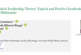 ABSTRACT. Leadership studies in Indonesia tend to discuss the way leadership affects individual attitudes and behavior as well as team effectiveness. However, a more contextual and recent approach study in understanding leadership remains underdeveloped. As a preliminary, this study aims to explore the concept of Indonesia’s leadership based on local perspectives by taking into account Implicit Leadership Theory. Data were gathered by involving 404 millennials (63,6% female, 36,4% male) using an open-ended question namely “Describe three characteristics of a leader” and two scales asking participants’ perception about how typical and effective each leaders’ characteristic count for leadership. A total of 1159 responses were analyzed using thematic analysis and demonstrated four characteristics depicting prototypes of leaders namely moral (41,07%), generally-competent (29,42%), charismatic (20,79%), conscientious (8,71%). A one-way ANOVA was also conducted to compare the effect of leader’s prototypes on perception of typicality and effectiveness of leadership. There was a significant effect of leadership prototypes on perception of typical leadership at the p<.05 level for the three conditions for each of perception about how typical and effective the prototypes reflect leadership. However, at the level of prototypes, no differences were found in perceiving which prototypes were considered as more typical and effective. The descriptive scores of each prototype indicates all of the prototypes were perceived as high in reflecting typicality and effectiveness in leadership. In conclusion, all leadership prototypes emerged from the responses were perceived as both typical and effective by the participants.