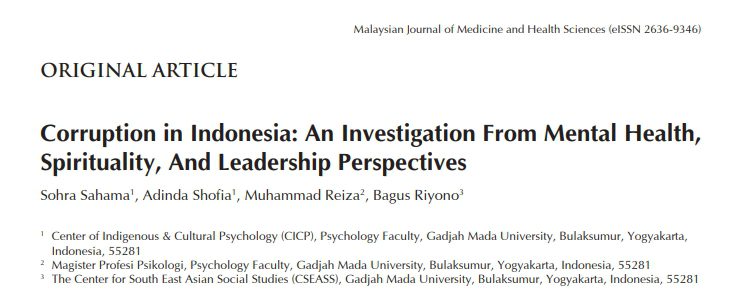 Corruption in Indonesia: An Investigation From Mental Health, Spirituality, And Leadership Perspectives